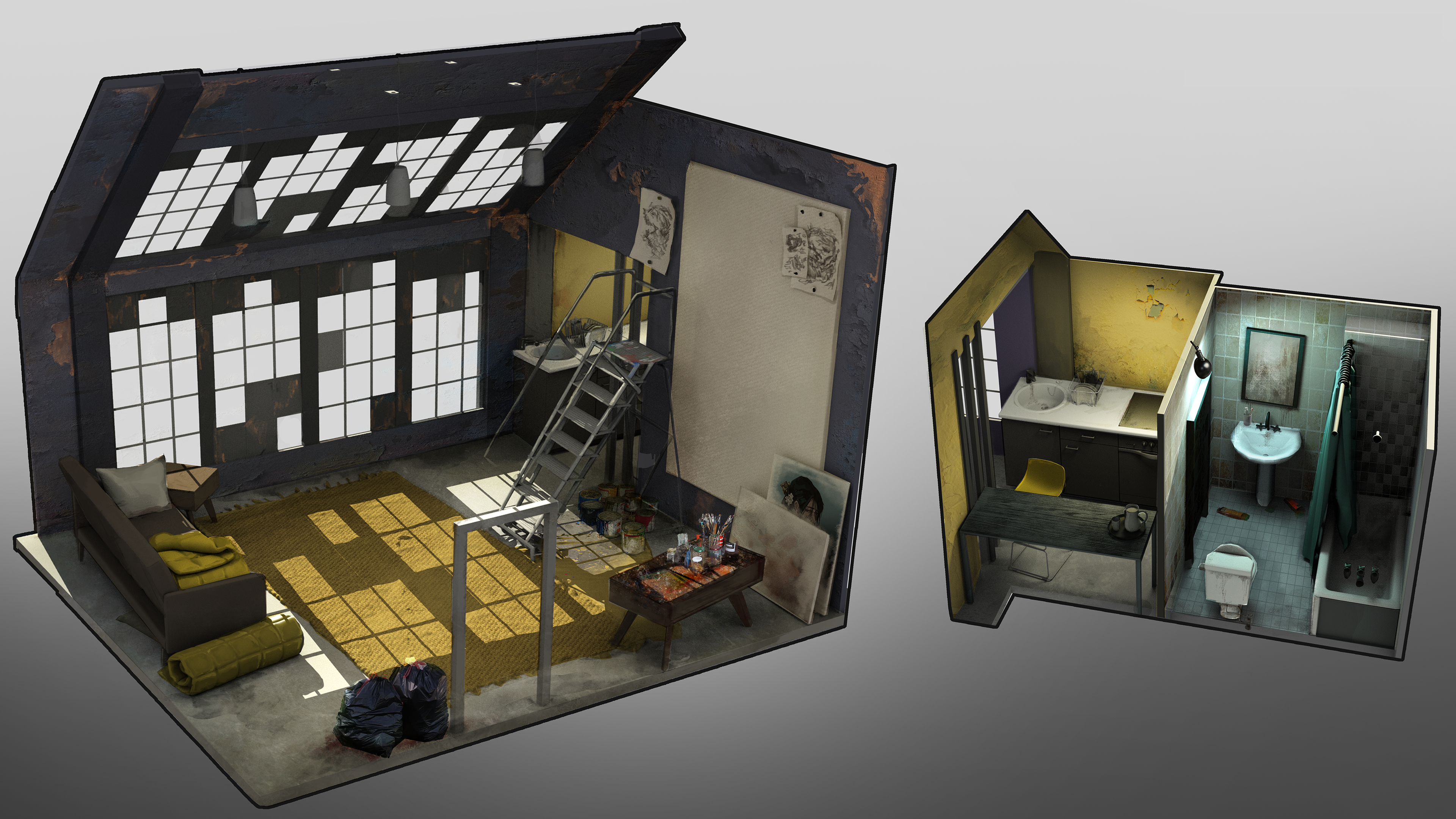 The main character's apartment. A moody, poorly kept creative space that serves as a core set for confrontations, emotional revelations and to help show to viewers who Silas is as a person.